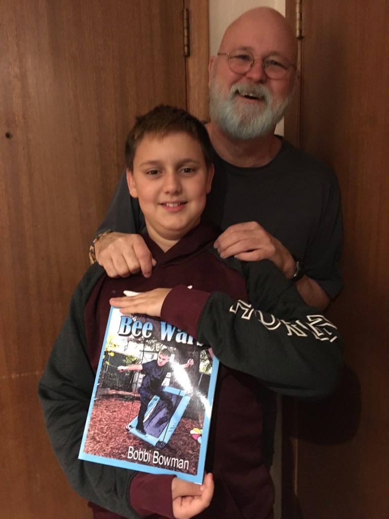 My most recent children’s book is ready for purchase from Amazon. The models, my grandson Jack and husband Robert are proud to show it off! I’m delighted to share this story about a boy with great imagination who learns an important lesson about bees.